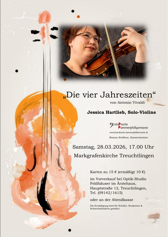 Die Solo-Violine übernimmt dabei eine besondere Rolle: Sie lässt Vogelstimmen erklingen, imitiert Gewitter, schildert Jagdszenen und lässt schließlich die Kälte des Winters hörbar werden. Die Solopartie gestaltet Jessica Hartlieb (Fränkische Philharmonie) mit virtuoser Präzision und großer Ausdruckskraft.